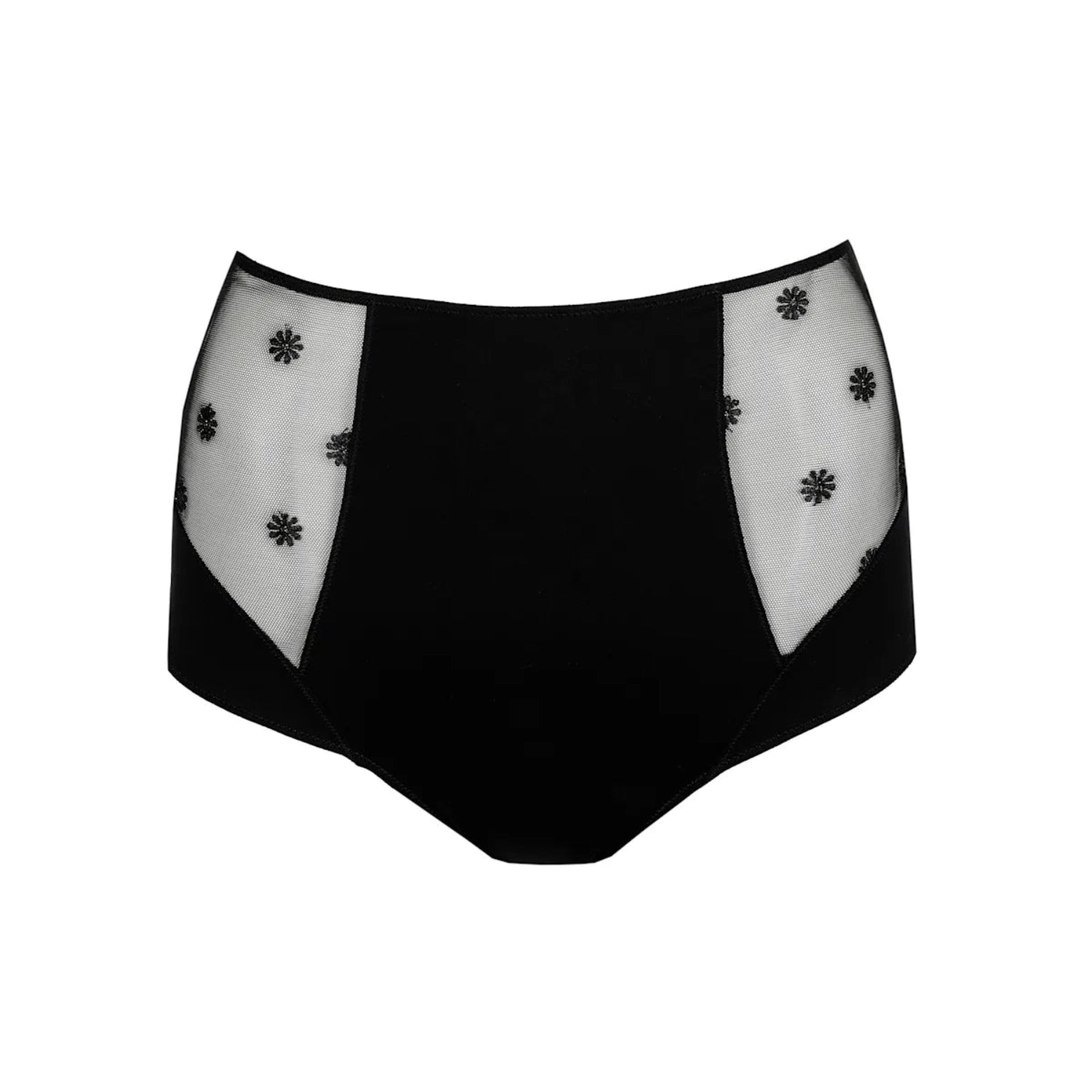 This is a new take on the classic Marie Jo full brief. The fine seam runs over the hips and really brings out the elegant line.With a super high waist it covers part of the tummy plus almost full sheer coverage at the back to create a stylish yet comfortable brief. It includes a criss-cross design at the back.