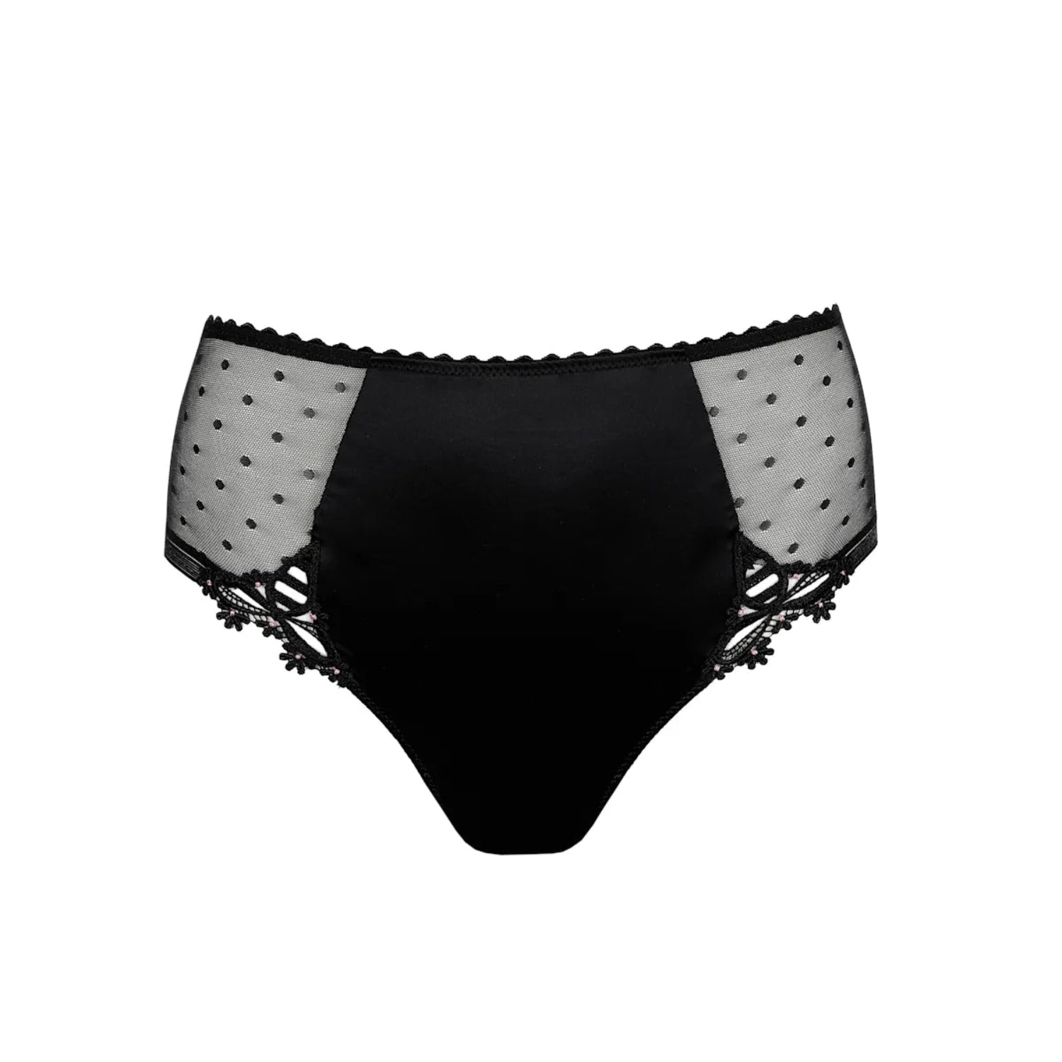 A new take classic Marie Jo full brief, these briefs have a delicate daisy design on the legs. The fine lace embroidery runs over the hips and really brings out the elegant line. It covers part of the tummy as has sheer lace on the hips plus full coverage at the back to create a stylish yet comfortable brief.