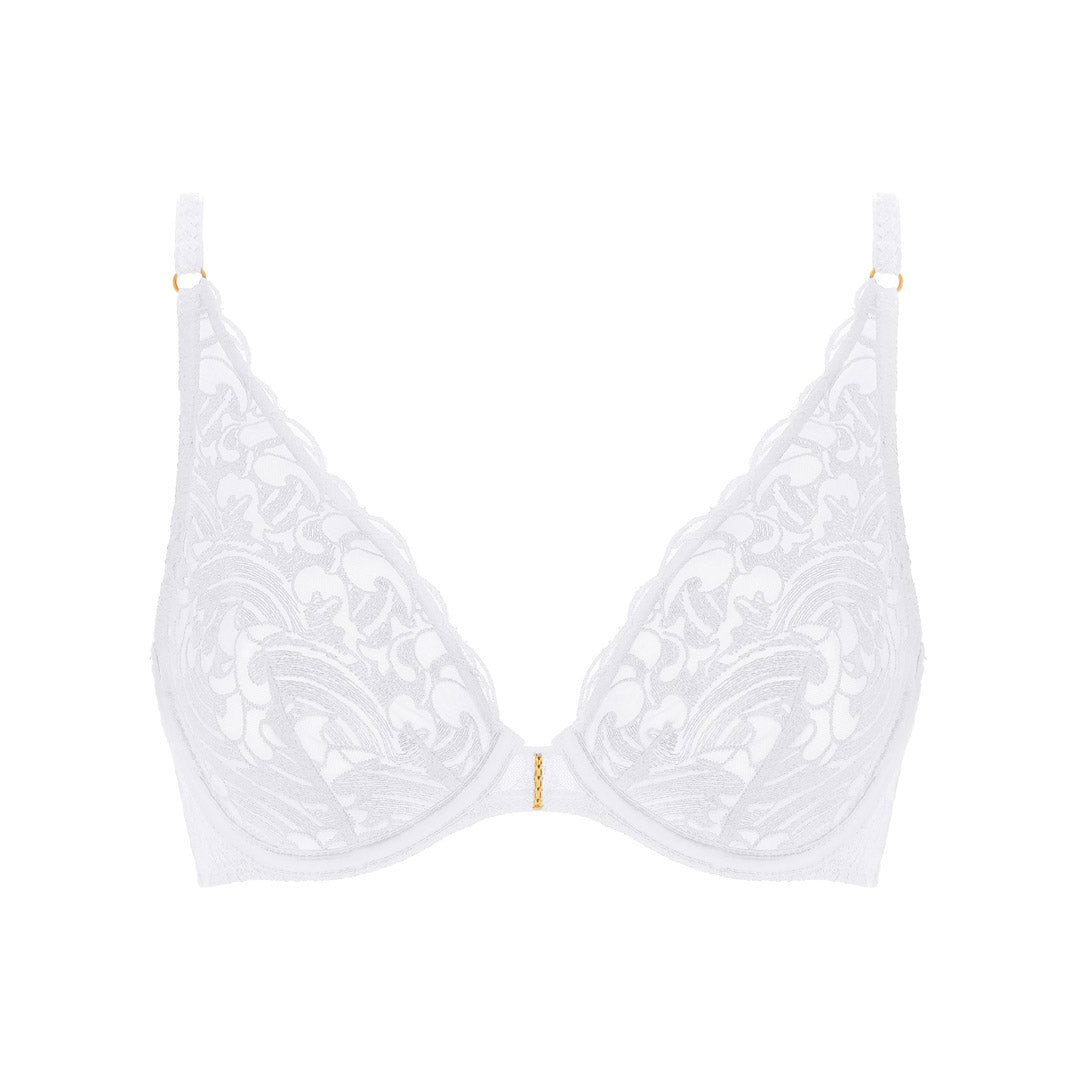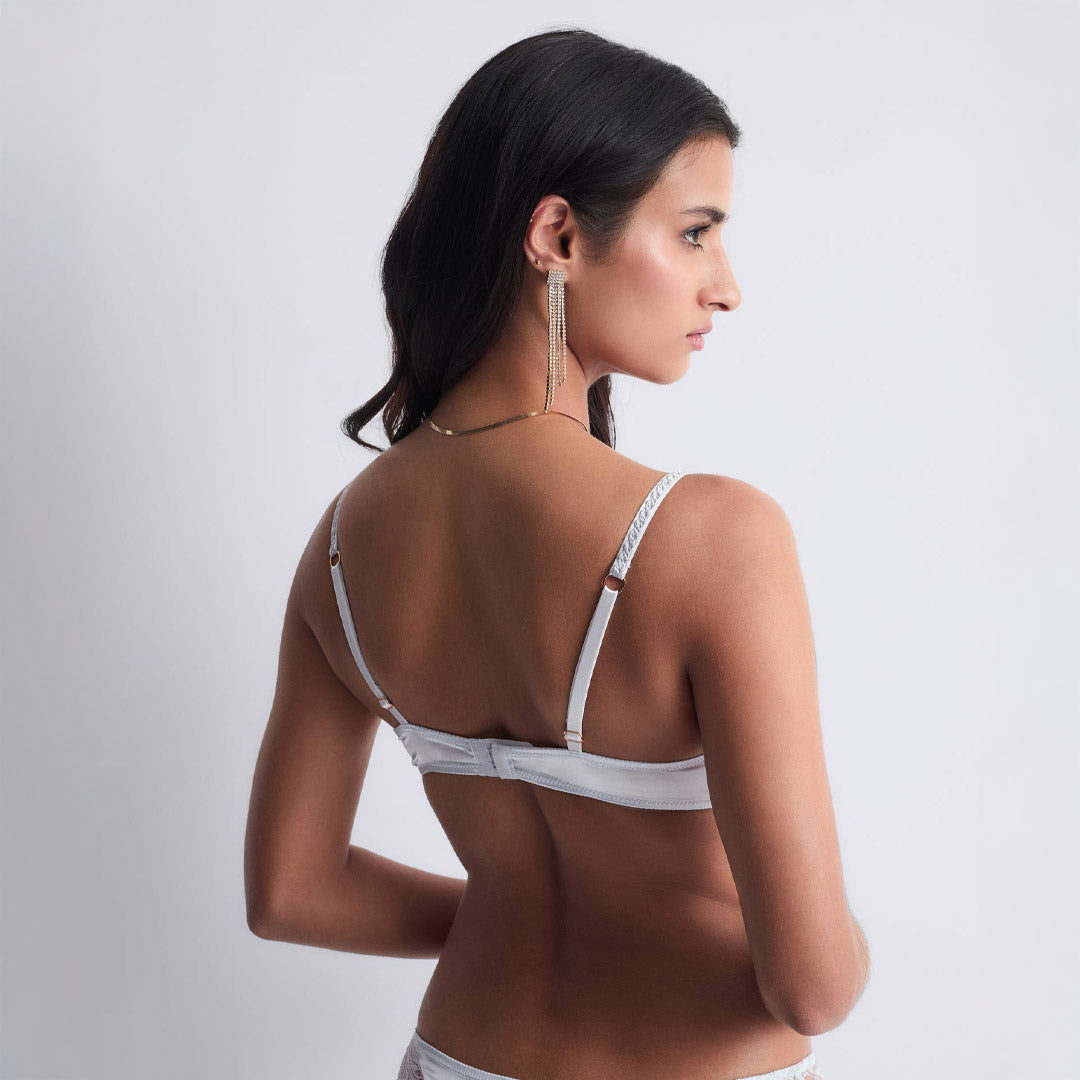 Giving the chest in a deep neckline accentuated by exclusive French embroidery inspired by the waves, the Satin Memories by Aubade underwired triangle bra offers a modern and resolutely sexy cut, all in transparent fabrics, with gold accent details. On the back, it is adorned with a very soft shiny satin for a feeling of comfort and lightness on a daily basis.