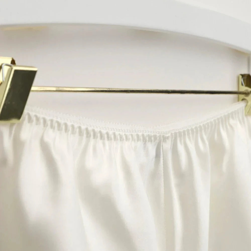 100% Pure Silk French Knickers. Elastic waist band and loose leg fitting. French seams for extra comfort. Perfect under skirts, dresses and trousers. And of course, for sleeping too! Pair them with our camisole for a nightwear set!
